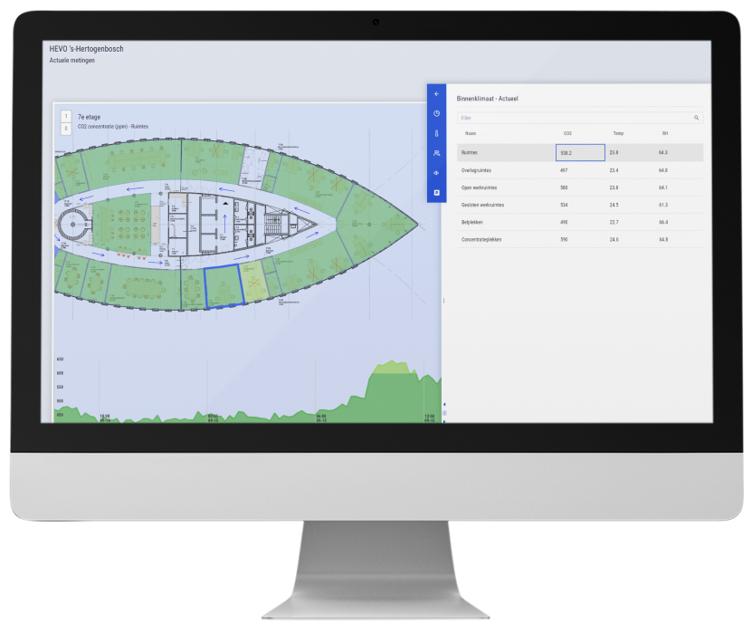 Onze sensoren meten 24/7 het binnenklimaat en